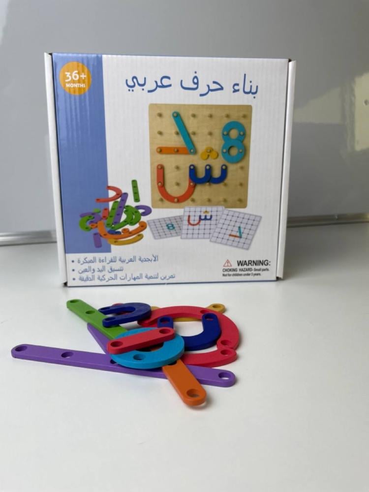 هي عبارة عن تركيبات بأشكال هندسية يقوم الطفل بدمجها وتركيبها فوق لوح خشبي متين ليكوّن شكل الحرف العربي خطوة بخطوة.
